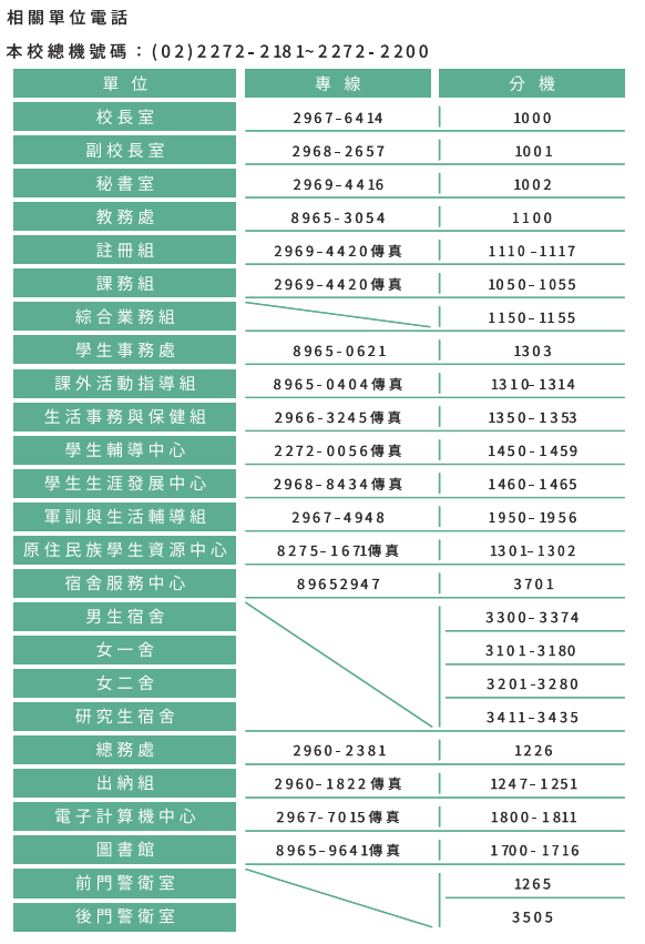 學雜費及其它費用承辦單位一覽表